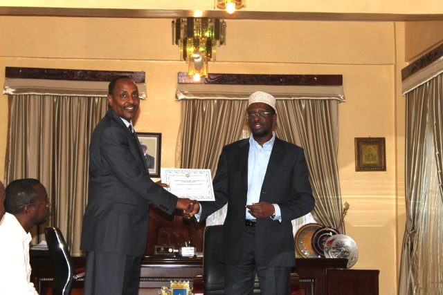 Madaxweynaha ayaa bixiyay shahaaddada kaddib markii uu Daahir Cabdulaahi Kadiye uu door weyn ka qaatay sii deyntii Paul and Rachel Chandler oo ahaa lamanayaal Britain u dhashay oo aye burcad badeeda heysatay muddo dheer. Madaxweynaha ayaa bogaadiyay Mr. Daahir iyo dhamaan dadkii ku wehliyey sii deynta lamaanayaashaas.
