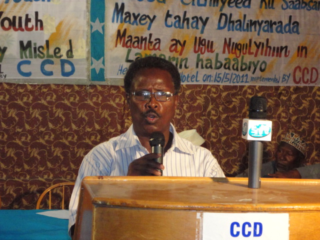 Sheekh C/qaadir Soomow oo isaguna goobta ka hadlay ayaa sheegay in dhallinyarada maanta si toos ah loogu adeegsado dagaallada isla markaana dhalinyarada ay noqdeen kuwo labo qayb ah, isagoo sheegay in looga baahan yahay dhallinyarada inay isku uur noqdaan ayna dalka ka badbaadiyan dhibaatooyinka raagay.