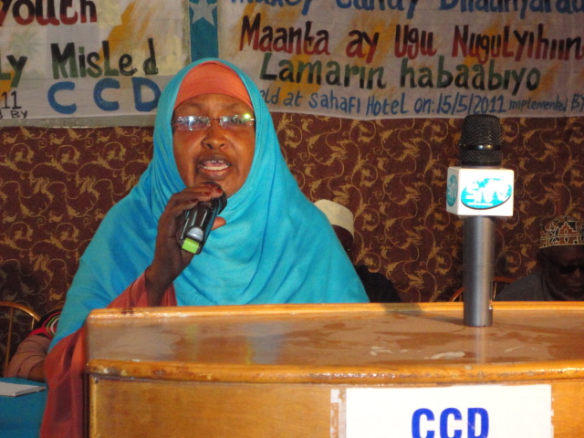 Xoghayaha guud ee dallada ururada bulshada Faadumo Aadan Cosoble oo iyaduna goobta ka hadal kooban ka jeedisay ayaa tilmaantay heerka uu maanta dalku marayo yahay mid aad u xun, waxayna xustay in dhallinta loo adeegsado dagaallo, iyadoo tilmaamay in waalidku uu caruurtiisa ku boorriyo wax u qabashada dalkiisa,