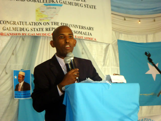 Axad, September 18, 2011(HOL) Nairobi . Kenya - Xaflad ay isugu yimaadeen boqollaal Soomaali oo habaynkii xalay ahaa ka dhacday bartamaha caasimadda Nairobi ayaa lugu xusay sanad guuradii 5aad ee kasoo wareegatay markii la isku raacay in tiirarka loo taago maamul goboleedka Soomaaliyeed ee Gal-mudug.