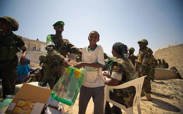 Isniin, Feberaayo 06, 2012 (HOL) − Ciidamada Uganda ee jooga Soomaaliya oo u dabaal-degaya sanad-guuradii 31-aad ee kasoo wareegtay markii la aasaasay ayaa gargaar kala duwan u fidiyay barakacayaasha ku jira kaamamka Muqdisho qaarkood gargaar isugu jira, biyo la cabo, dawooyin iyo maryaha-kaneecada laga hoos-galo.