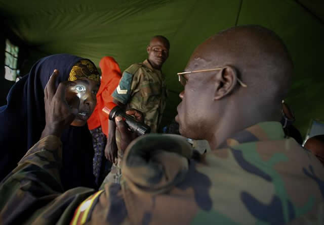 Sarkaalka ciidamada rayidka ah ee AMISOM, Col. Katwekyeire Kamurari ayaa xusay in ciidamada AMISOM ay qaybiyeen 2000 oo maro-kaneeco ah iyo 100,000 oo liitar oo biyo la cabo ah. AMISOM waxay kaloo sameysay daaweyn guud oo ay u fidiyeen dadka ku jiray xerooyinka. Sidoo kale waxay qaybiyeen cunno nafaqo leh taasoo ay siiyeen caruurta da’adooda ay ka yar tahay shan jirka.