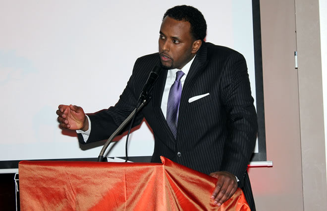 Dhinaca kale, waxaa xafladda hadal xiiso badan ka jeediyay, Cumar Maxamed Calixaashi oo ku hadlay magaca jaaliyadda Soomaaliyeed ee magaalada Ottawa isagoo ah sarkaal ka tirsan wasaaradda arrimaha dibadda ee dalka Canada. Cumar wuxuu u mahadceliyay dadka iyo dowladda Canada sidii isaga iyo kumanaan kale oo Soomaali ah ay ugu soo dhaweeyeen dalkooda markii ay dagaalka sokeeye ka qarxeen dalka Soomaaliya, isagoo markaas 10-jir ahaa. Wuxuuna ku booriyay dhallinyarada Soomaaliyeed inay ka faa’iideystaan fursadaha badan ee uu leeyahay dalka Canada gaar ahaan waxbarashada oo uu ku tilmaamay tan kaliya ee lagu hanan karo horumar dhinac kasta ah.