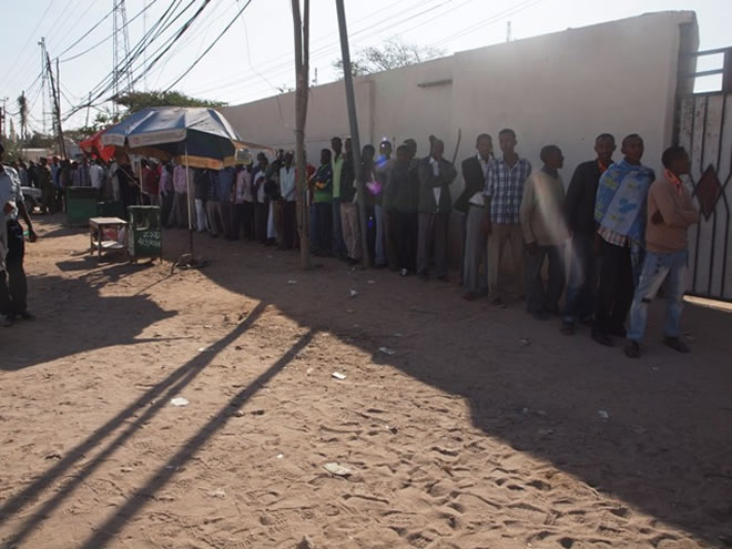 Dadweynaha intoodda badan waxay safka galeen habeenimaddii, halka qaarkood ay yimaadeen markii ay saaladda subax soo tukadeen, sidoo kale intii aanu kormeerka ku jirnay goobaha codbixinta waxa jiray sanaaduuq goobaha qaarkood ku soo qaldamay oo iska xidhnaa wax shaqo ahina aanay ka socon, balse ay askartu ilaalinaysay, halka qaarkoodna ay goobnihii la dhigi lahaa ka soo lumeen, isla markaana soo raaceen sanaduuq kale.