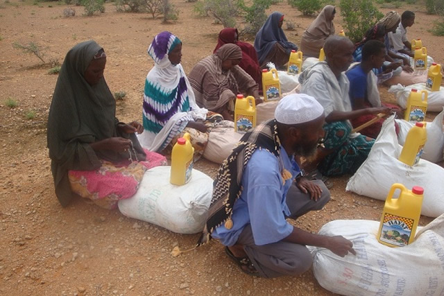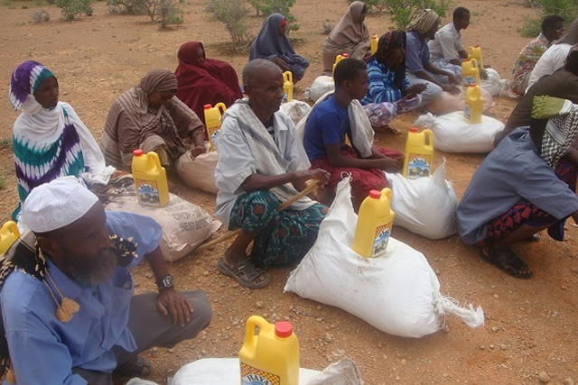 "Qoysas gaaraya ilaa 155 qoys oo ku noolaa deegaanno ku dhow-dhow degmada Baladweyne, waxaa loo qeybiyay deeq raashin ah oo ka koobnaa bur, bariis, sokor, iyo saliid, waxaan ku soo xulanay qoysaskaas sida ay u sii kala liiteen, ayuu yiri,’’ Xassan Ibraahim.