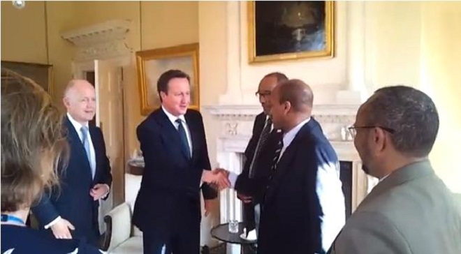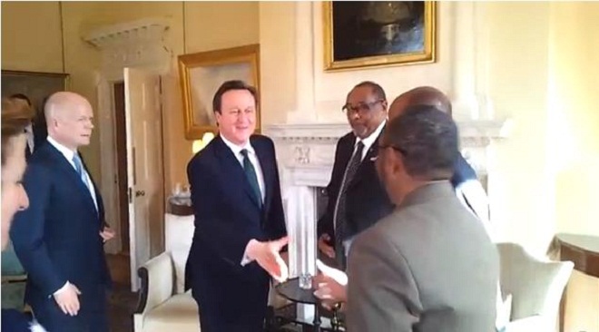 Khamiis, Abriil 18, 2013 (HOL) — Madaxweynaha Somaliland Mudane, Axmed Maxamed Maxamuud (Siilaanyo), ayaa xalay cawayskii la kulmay Ra’isal wasaaraha Ingiriiska David Cameron, kuwaas oo ka wadda hadlay ka qaybgalka shirka London ka dhici doona bisha May ee soo socota.