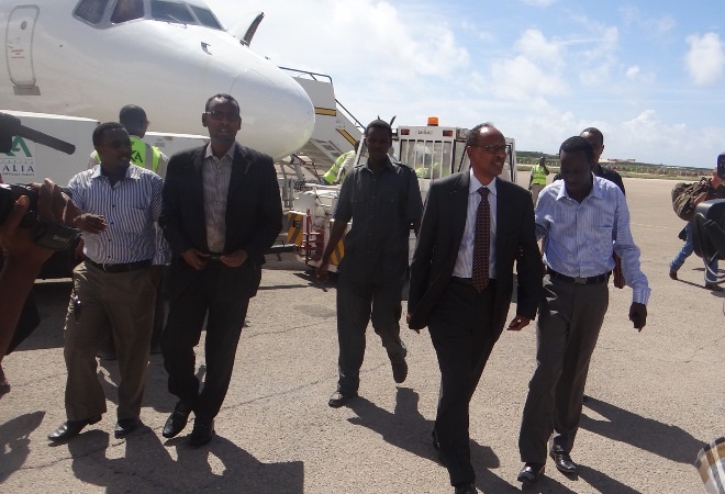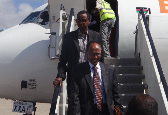 Khamiis, Abriil 25, 2013 (HOL) — Wasiirka wasaaradda maaliyadda iyo qorshaynta dowladda Soomaaliya, Maxamuud Xasan Sulaymaan iyo wafti uu hoggaaminayo ayaa saaka dalka dib ugu soo laabtay kaddib markii uu kasoo qayb-galeen shirkii hay’adda lacagta adduunka ee IMF-ta oo Washington lagu qabtay.