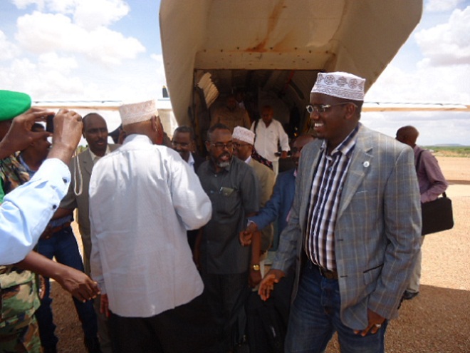 Axad, Abriil 07, 2013 (HOL) — Wafdi ka socda dowladda federaalka oo ka kooban wasiirro, xildhibanno iyo mas’uuliyiinta maamulka gobollka Hiiraan ayaa maanta gaaray magaalada Baladweyne.