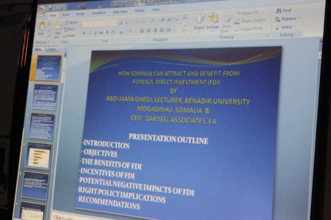 Labada maalmood ee kulankan uu socdo waxaa warbixinno ku saabsan sida sharci maalgashi dibadbadeed oo dhameystiran lagu heli lahaa ka jeedin doona laba khabiir oo dhinaca sharciga ah oo ka socda dalalka Uganda iyo Kenya iyo macallimiin Soomaaliyeed.