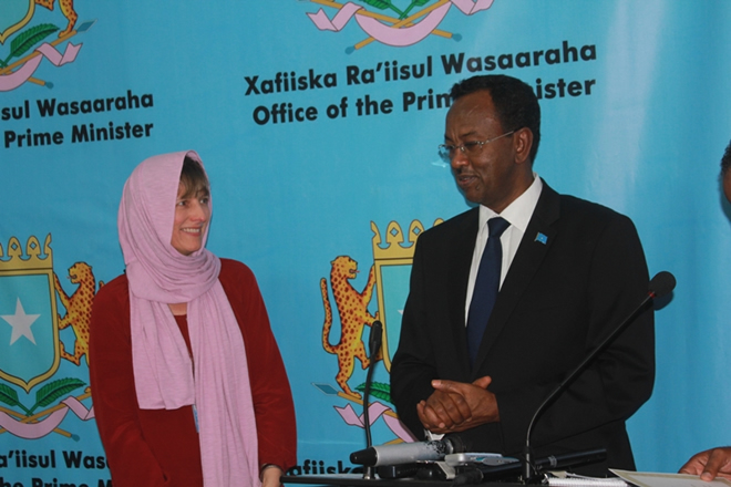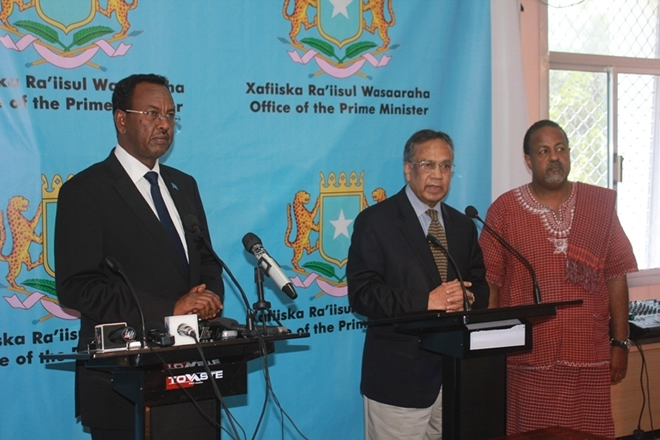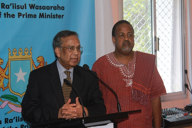 Ra’iisul wasaaraha Soomaaliya iyo Dr. Shamsul Bari oo shir jaraa’id oo si wadajir ah u qabtay ayaa isla qeexay in laga billaabo maanta uu yahay dhaqangal qorshahan geeddi-socodka xaquuqda aadanaha Soomaaliya.