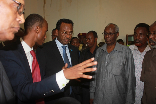 Khamiis, August 29, 2013 (HOL) — Ra’iisul wasaaraha Xukuumadda Soomaaliya, Cabdi Faarax Shirdoon (Saacid) ayaa saaka kormeer ku tegay bankiga dhexe ee Soomaaliya, halkaasoo ay ka soconeyso bixinta mushaharka shaqaalaha rayidka ah ee hay’adaha dawladda.