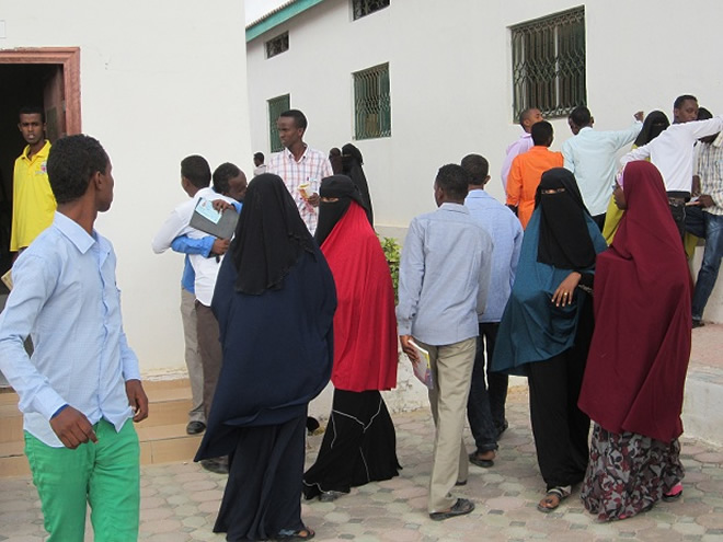 Khamiis, August 29, 2013 (HOL) — Xarunta Dr. Shahiid ee Jaamacada Banaadir oo ku taalla deegaanka KM-13 ee duleedka Muqdisho ayaa waxaa maanta lagu qabtay imtixaanka ogolaanshaha ama qubuulka ee ardayda ku biiraysa jaamacadda oo ay u fariisteen ku dhawaad kun arday.