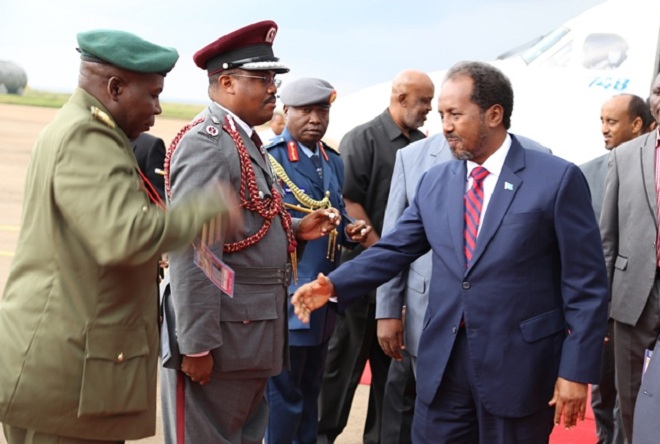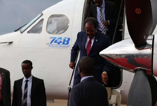 Sabti, August 03, 2013 (HOL) — Madaxweynaha Soomaaliya, Xasan Sheekh Maxamud iyo wafdi uu hoggaaminayo ayaa soo gaaray magaalada Kampala ee xarunta dalka Uganda si ay uga qayb-galaan shirka dalalka ay ciidamada AMISOM ka joogaan Soomaaliya.