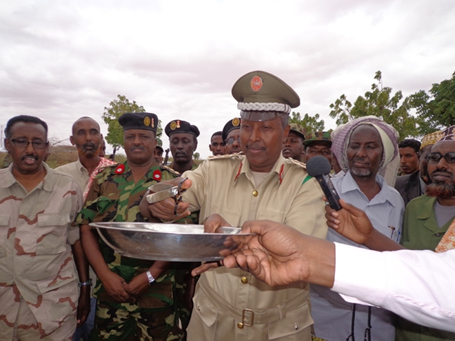 Jimco, August 30, 2013 (HOL) — Munaasabad ballaaran oo dib loogu furayay xerada ciidamada xoogga dalka ee 21-aad oo ku taalla magaalada Dhuusa-mareeb oo ah xarunta gobolka Gal-guduud ayaa gelinkii dambe ee maanta lagu qabtay dhismaha xeradaas, waxaana xarigga ka jaray abaanduulaha ciidamada xoogga dalka, Jen. Cabdirisaaq Khaliif Cilmi.