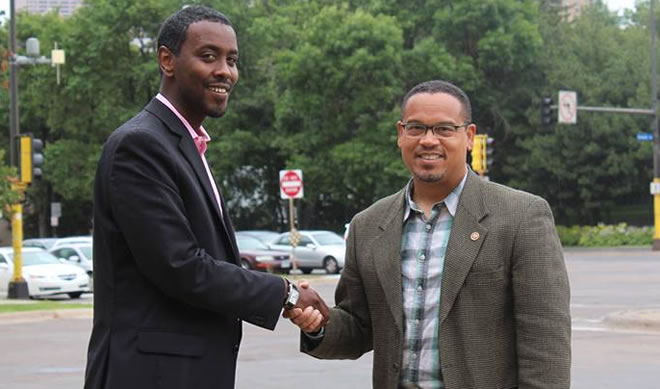 Isniin, Agoosto 05, 2013 (HOL) - Keith Ellison oo ah xildhibaan ka tirsan aqalka sharci dejinta Congress ee dalka Mareykanka ayaa soo dhaweeyay musharraxa Soomaaliyeed ee Cabdi Warsame oo u tartamaya golaha deegaanka magaaladda Minneapolis ee gobolka Minnesota, isagoo u sheegay inuu ugu deeqayo taageeradiisa, isla markaana ka qeyb galayo isku soo baxyada ololihiisa.