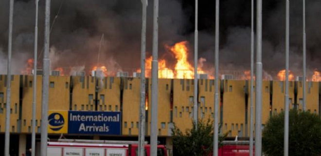 “Waxaan xaqiijinaynaa in dabku uu burburiyay qaybta koowaad oo ay kasoo xirtaan diyaaradaha ka yimaada dibadda,” ayaa lagu yiri warsaxaafadeed ay soo saareen maamluka Jommo Kenyatta.
