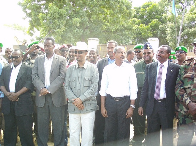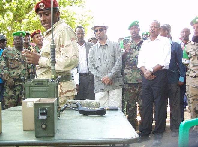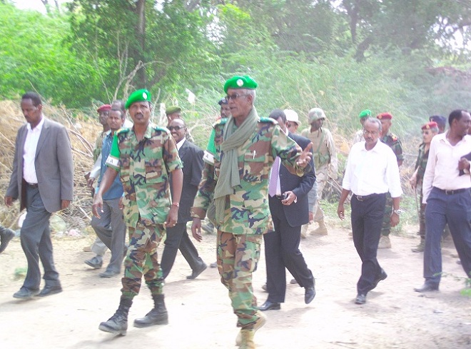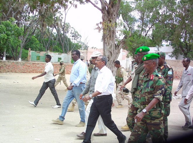 Jimco, August 09, 2013 (HOL) — Wasiirrka gaashaandhiga jamhuuriyadda Jabuuti, Xasan Dharaar Hufane iyo xubno saraakiil ah oo uu horkacayo ayaa maanta gaaray magaalada Baladweyne ee xarunta gobolka Hiiraan oo ay ka howlgalaan ciidamo ka socda dalka Jabuuti ee qeyb ka ah howlgalka midowgga Africa AMISOM.