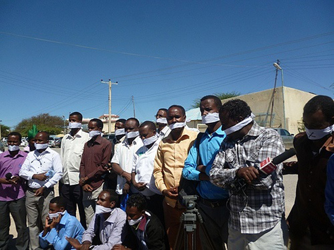 Wariyeyaashan ayaa dhamaantood afka iskaga xidhay , isla markaana muddo shan daqiiqo ah aamusnaan ku qaabilay maalinta xuquuqul insaanka aduunka iyo sida ay uga xun yihiin cabudhinta wariyeyaasha lagu hayo.