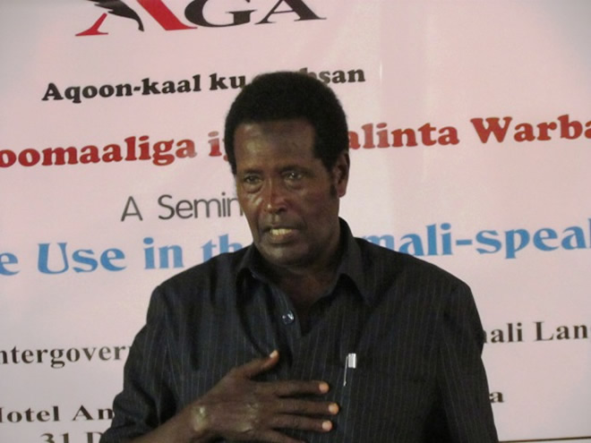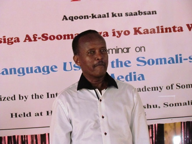 Guddoomiyaha Akadeemiye goboleedka afka Soomaaliga, Maxamed Daahir Afrax ayaa kula dardaarmay wariyeyaasha inay door lixaad leh ka qaataan sidii loo gaarsiin lahaa bulshada Soomaaliyeed isticmaalka luqaddooda rasmiga ah.