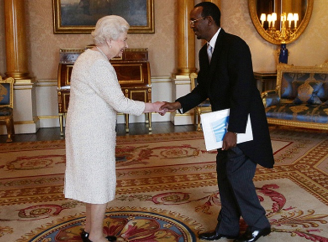 Boqarada Boqortiiyada Midowga Britain, ahna madaxa guud ee wadammada ku bohoobay ururka barwaaqo sooranka Boqorad Elizabeth II. Xaflad aad loo agaasimay oo ka dhacday hoyga boqoradda ee Buckingham Palace ayay Boqoradda kaga guddoontay Safiirka waraaqihiisa dublumaasiyeed ee safiirnimo.