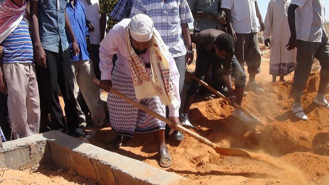 Dhamaan mas'uuliyiintii iyo dhinacyadii kasoo qayb-galay aaska wariye Cali Suldaan ayaa hadallo tacsi ah ka jeediyay qabuuraha lagu aasay oo barriga Gaalkacyo ku yaalla, iyagoo Rabbi ugu baryay wariyaha inuu u naxariisto.
