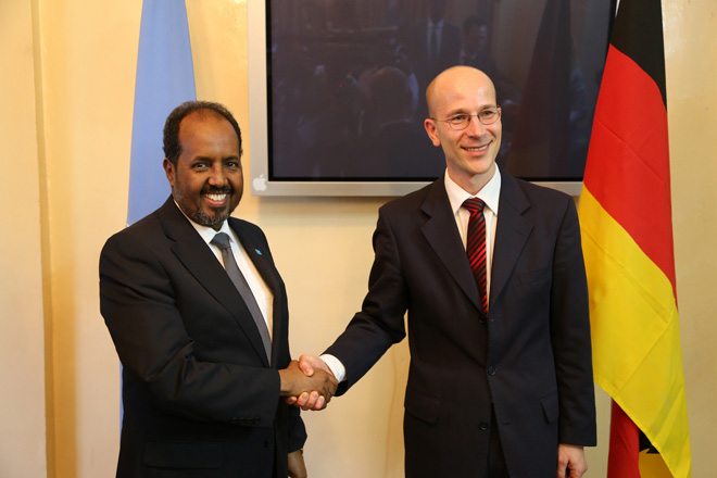 “Jarmalka iyo Soomaaliya waxaa ka dhexeeyay xiriir dheer oo wanaagsan; waxayna Soomaaliya ka faaa’iideysatay mashaariic ay dowladda Jarmalka ka hirgelisay Soomaaliya. Jarmalka wuxuu taageeraa tababbarada ciidamadda Soomaaliya. Ciidamadeenna amnigana waxay helaan tababar heer-sare ah,” ayuu yiri madaxweynaha Soomaaliya.