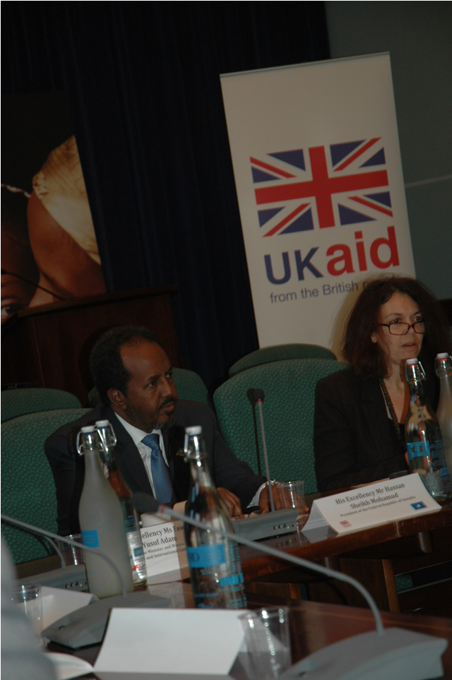 Sidoo kale Madaxweynaha ayaa wuxuu la kulmay hey’adda u qaabilsan dowladda Ingiriiska, dhanka horumarinta.Goobtaas wuxuu Madaxweynaha ka sharaxay qaabka ay dowladda Federaaalka Soomaaliya ku dooneyso in ay u geyso geeyso adeega bulshada gobolladda dalka oo dhan.