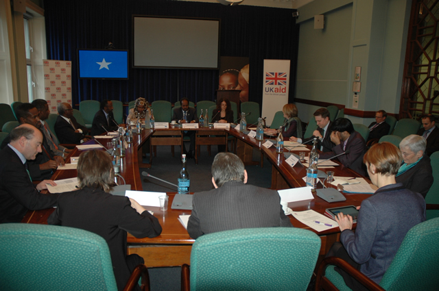 Wafdiga ayaa waxaa saaka qaabilay saraakiisha ugu sarreysa xagga amniga ee dowladda Ingiriiska, waxaana halkaas looga hadlay qaabkii Soomaaliya dib loogu soo celin lahaa nabadda, Amniga ayaa wuxuu kow ka yahay Lixda tiir Sayaasadeed ee dowladda Soomaaliya.