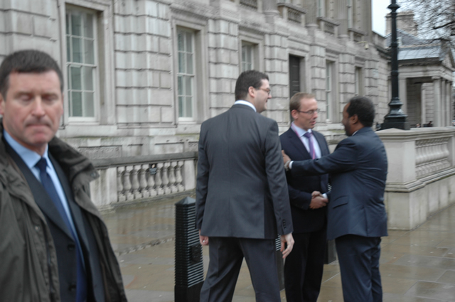 Sabti, February 02, 2013-Madaxweynaha Jamhuuriyadda Federaalka Soomaaliya Xasan Sheekh Maxamuud iyo wafdi heersare ah oo howl shaqo u jooga London ayaa maanta kulamo la qaatay saraakill sar sare oo ka tirsan dowladda Ingriiska.