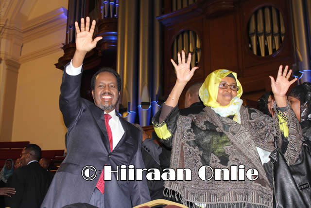 Madaxweynaha Soomaaliya Xasan Shiikh Maxamuud ayaa ugu dambeyntii codbaahiyaha lagu soo dhaweeyay, wuxuuna ugu horreyn ka mahadceliyay soo dhaweyntii ay Jaaliyadda Soomaaliyeed ee UK u sameeyay.