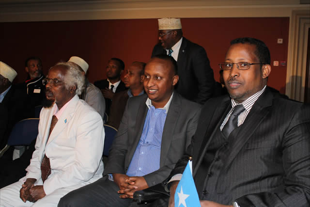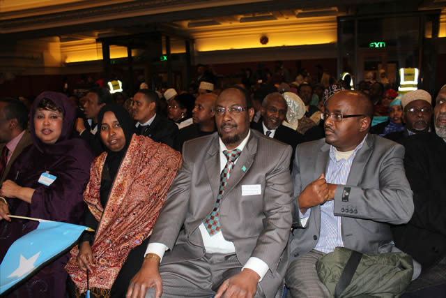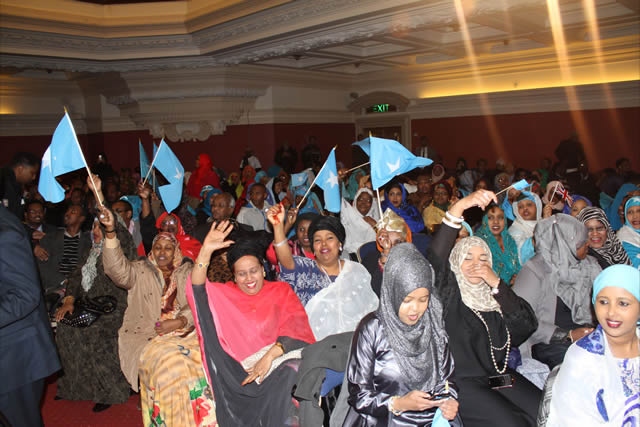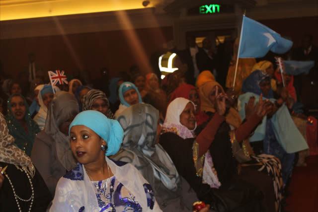 Xafladda ayaa waxaa ka soo qeybgalay Soomaali kummanaan ah oo ku nool UK, kuwaasi oo hoolka uga soo xaariday in ay maamuus sarreeya u sameeyaan Madaxweynaha iyo wafdigiisa. Wafdiga Madaxweynaha waxaa ka mid ah R/Wasaare Ku Xigeenka, ahna Wasiirka arimaha dibadda iyo iskaashiga Caalimiga Marwo Fawziyo Yusuf Adan,Wasiiru-dowlaha madaxtooyadda Faarax Shiikh Cabdulqaadir, la-taliyayaasha Madaxweynaha, iyo saraakiil ka howlgash xafiiska Madaxweyaha Soomaaliya.