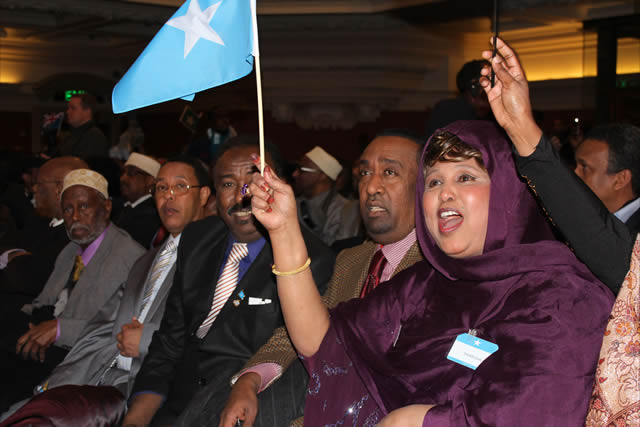 "Wax kasta waan soo marnay, wax na qaado ma lahan, waxaa na qaada calanka buluugga ah ee shanta gees leh, waxaana u baahan nahay in aan is-ogolaanno oo midnimo la nimaado. Adduunka haddii aad doontaan in aad u safartaan qaarkiin waxaa laga yaabaa in ay idinka xigto in aad tikidh kaliya goosataan, halka aniga aaney sidaas iigu sahlaneyn, laakin mar walba waxaa tihiin Somali-British, meel kasta oo aad tagtaanna waxaan tihiin Soomaali"ayuu yiri madaxweynaha oo Soomaalida u iftiiminayay in ay dal leeyihiin uuna wax u qabasho ka sugayo.