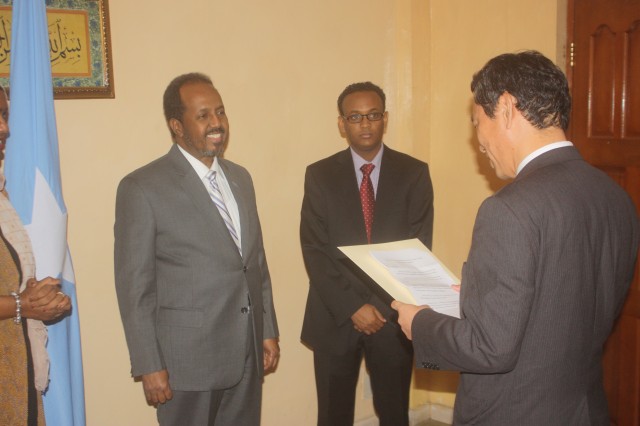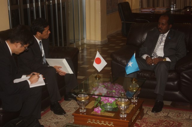 Kaddib markii uu ka guddoomay waraqadaha shaqadda ayuu Madaxweynaha sheegay in dowladda Japan ay ka mid tahay dowladdaha Soomaaliya toos ula xariira. Japan ayaa waxaa ay Soomaaliya ku bixisay $200 milyan, si Soomaaliya nabaddeeda dib loogu soo celiyo.