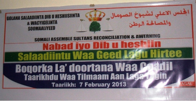 Suldaan Cali Suldaan Axmed Nuur oo goobta ka hadlay ayaa yore: "Golaha salaadiinta Soomaaliyeed ma ahan mid shaqsiyad ku saleysan iyo qabiil gaar ah; waxaana guddoomiye u doorannay inuu na hoggaamiyo boqorkan aqoon leh, deeqsina ah."