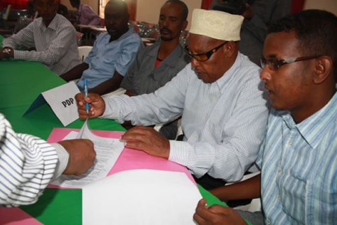 Guddiga doorashooyinka iyo madaxda ururada-siyaasadda ayaa maanta ku kulmay xarunta hay’adda cilmi baarista Puntland ee PDRC ee magaalada Garoowe, waxaana isla goobta xeerkan ku saxiixay shan ka mid ah lixda urur siyaaasadeed ee Puntland.