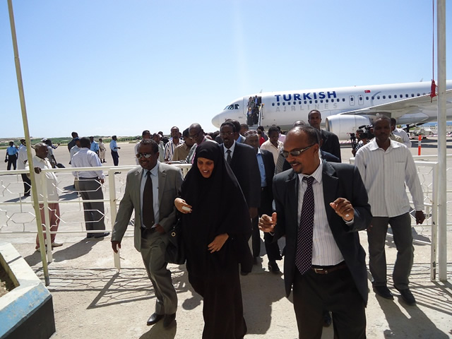 Arbaco, Jannaayo 09, 2013 (HOL) — Wasiiradda wasaaradda horumarinta iyo adeegga bulshada xukuuumadda Soomaaliya, Maryan Qaasim Axmed  ayaa maanta oo Arbaco ah dib ugu soo laabatay Muqdisho, kadidb safaro ay toddobaadyo ku maraysay dalalka Turkiga iyo Tuuniisiya, waxaana la socday wufuud ka socday dowladda Turkiga uu u kuurlgalaya sidii horumarin loogu sameyn lahaa dalka.