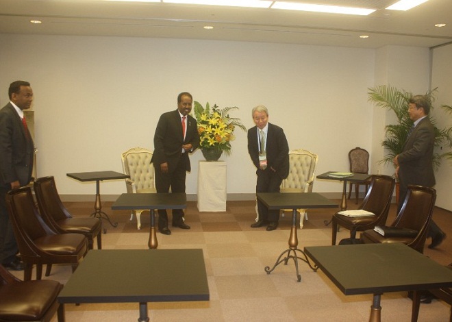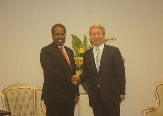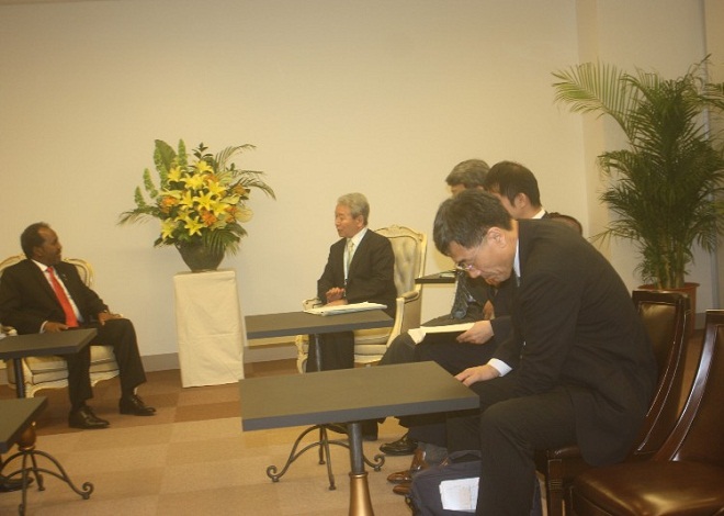 Axad, Juun 02, 2013 (HOL) — Madaxweynaha Soomaaliya, Xasan Sheekh Maxamuud ayaa maanta oo Axad ah kula kulmay magaalada Yokohama ee dalka Japan guddoomiyaha hay’ada xiriirka caalamiga Japan (JICA), Akihiko TANAKA, isagoo kala hadlay go’aankii ra’iisul wasaaraha Japan, Shinzo Abe ee ahaa in Soomaaliya si toos ah kaalmada Japan loo siinayo dowladda iyo mashaariicda horumarineed ee Soomaaliya u baahan tahay.