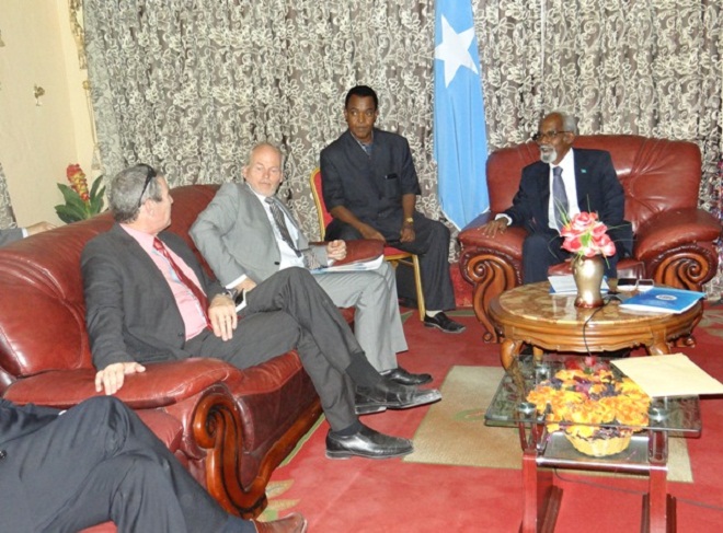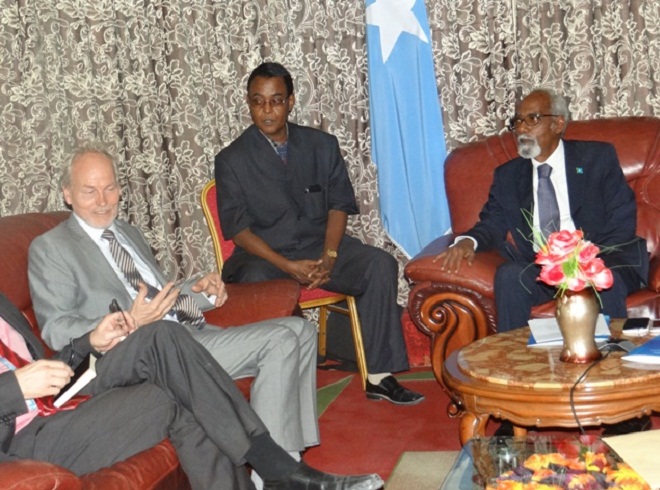 Isniin, Juun 03, 2013 (HOL) — Guddoomiyaha baarlamaanka Soomaaliya, Prof. Maxamed Sheekh Cismaan (Jawaari) isla markaana ah sii hayaha xilka madaxweynimo ee Soomaaliya ayaa maanta kula kulmay Muqdisho ergayga cusub ee Qaramada Midoobay ay u soo magacowday Soomaaliya, Nicholas Key.