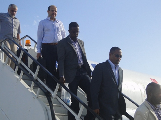 Garoonka diyaaradaha Muqdisho ayaa waxaa kusoo dhaweeyay wafdigan xubno uu ka mid ahaa wasiirka Owqaafta, arrimaha Diinta iyo Garsoorka Soomaaliya, C/llaahi Abyan Nuur iyo danjiraha Jabuuti ee Soomaaliya, Dayib Dubad Rooble.