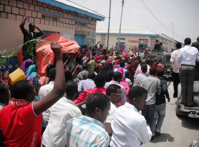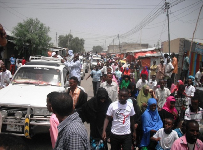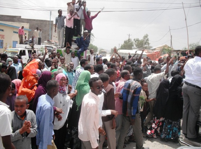 Boqolaal dadweyne ah ayaa isugu soo baxay waddooyinka waaweyn ee degmadaas, kuwaasoo gacmaha u haatinayay Prof. Samatar oo gaari dusha ka furan saarnaa, halkaasoo uu dadka ka salaamayay.