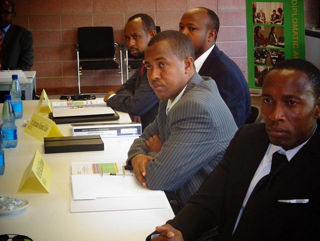 Axad, Maarso 10, 2013 (HOL) — Dublamaasiyiin ka socda wasaaradda arrimaha dibadda iyo iskaashiga caalamiga ee Soomaaliya oo tiradoodu tahay 20 ayaa wuxuu tababar ay ku baranayaan sida ay wasaaradda arrimaha dibaddu u shaqeyso uga socdaa dalka Koonfur Afrika.