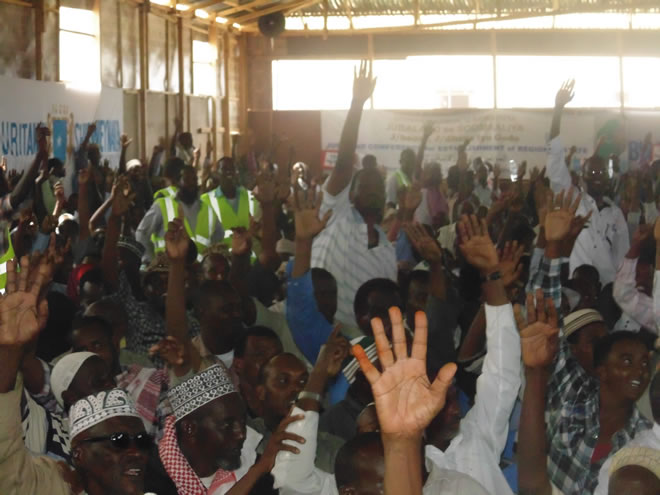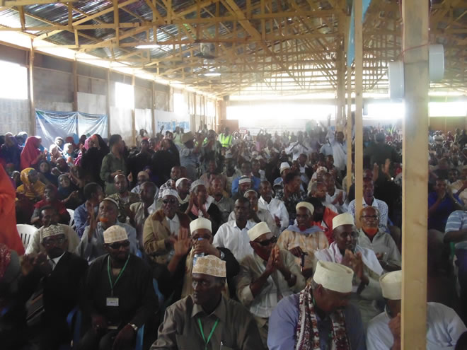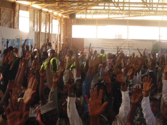 Goobta uu shirku ka dhacayay ayaa waxaa ku sugnaa ilaa 500 oo ergo oo ahaa ergadii loogu talogalay in ay doorato madaxweeynaha, waxaana sidoo kale soo xaadiray Musharixiinta kala ah: Musharax Sheekh Axmed Max’ed Islaam (Axmed Madoobe), Musharax Max’ed Nuur Shambaar, Musharax Hilowle Aadan Muxumed.