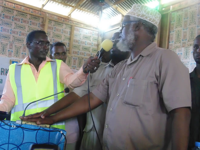 Isla goobta ayaa waxaa ka dhacday dhaarintii madaxweeynaha, waxaana Sheekh Axmed Madoobe uu ku dhaartay in dalka iyo dadka uu ugu adeegi doono si daacad ah islamarkaasina waafaqsan shareecada Islaamka.