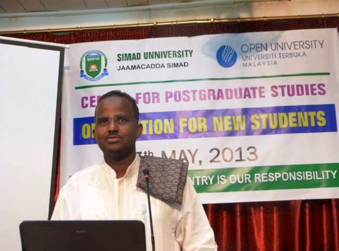 Ugu horreyn waxaa halkaas ka hadalay madaxa daraasaadka sare ee jaamacada SIMAD, Inj. Maxamuud Maxamed Calasoow isagoo ardayda kala hadlay waxyaabaha laga doonayo iyo shuruudaha ay wax ku baran doonaan wuxuuna ardayday kula dardaarmay inay ka dhabeeyaan sii wadista waxbarashadan sare.