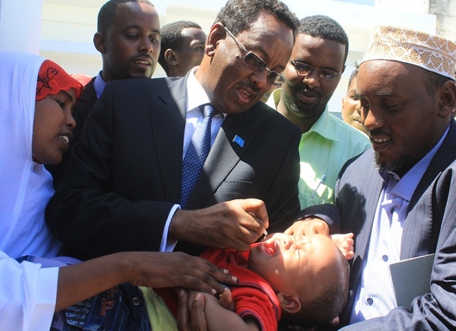 Talaado, May 28, 2013 (HOL) — Ra’iisul wasaaraha Xukuumadda Somalia, Cabdi Faarax Shirdoon (Saacid) oo ay wehliyaan xubno ka tirsan golihiisa wasiirrada, guddoomiyaha gobolka Banaadir ahna duqa Muqdisho, xubno ka tirsan hay’adaha WHO, UNICEF, OCHA iyo mas’uuliyiin la socda waaxda caafimaadka dowladda ayaa ka qayb-galay xaflad lagu daah-furayey tallaalka cudurka halista ah ee dabeysha oo wajigiisii labaad maanta si rasmi ah uu u furmay Muqdisho.