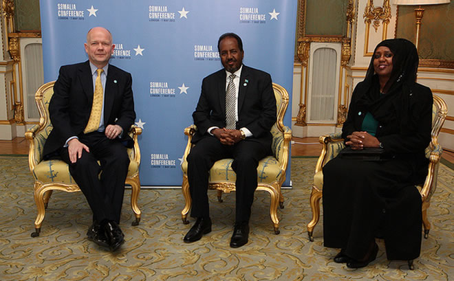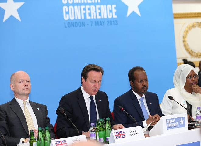 Madaxweynaha Soomaaliya , Xasan Sheekh Maxamud iyo ra’iisul wasaaraha Britain, David Cameron ayaa si wadajir ah u furay shirka una shir-gudoomin, iyadoo madaxweyne Xasan Sheekh uu ka jeediyay furitaanka shirka hadal uu ugu talogalay inuu kaga warbixiyo xaaladda Soomaaliya.