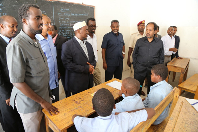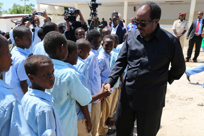 Arbaco, November 20, 2013 (HOL) — Madaxweynaha Somalia, Xasan Sheekh Maxamud ayaa maanta kormeer shaqo ku tagay iskuulka Xamar Jab-Jab ee gobolka Banaadir, isagoo sheegay in Soomaaliya ay saxiixi doonto heshiiska caalamiga ee xaquuqda carruurta, maadaama ayy maanta ku beegan tahay maalinta caalamiga ah ee xaquuqda carruurta Adduunka oo aasaaskeedu uu ku beegnaa 20-kii November 1989kii markii Qaramada Midoobey ay u aqoonsatay maalinta Xaquuqda Carruurta Adduunka.