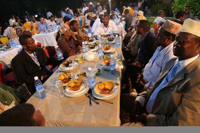 Arbaco, November 06, 2013 (HOL) — Madaxweynaha Soomaaliya, Xasan Sh. Maxamuud oo xalay casho sharaf ugu sameeyay xarunta madaxtooyada ergada ka qaybgalaysa shirka dib u heshiisiinta Jubbooyinka ayaa sheegay in hadafkooda uu yahay inay nabad iyo maamul wanaag ka hirgasho dhammaan gobollada Soomaaliya.