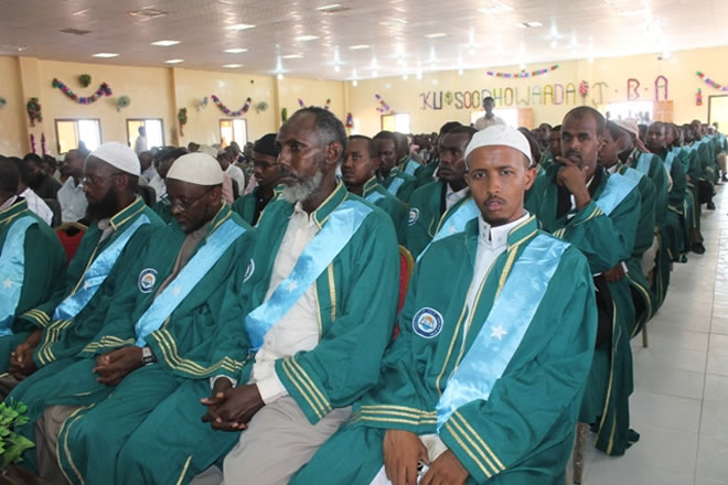 Khamiis, Oktoobar 31, 2013 (HOL) — 596 arday oo labadii sano ee ugu dambeeyey ka baxay kulliyadaha kala duwan ee Jaamacadda Bariga Afrika, ayaa maanta waxaa xaflad ay ku qalin jabinayeen oo aad u ballaarneyd loogu qabtay hoolka jaamacadda ee magaalada Boosaaso.
