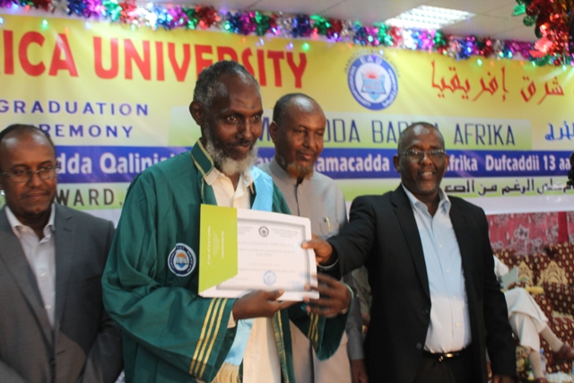 Intaas kaddib guddoomiyaha jaamacadda ayaa natiijooyinka ardayda qalin jibeyey iyo macluumaad kale oo la xiriira waxbarashadooda, wuxuu ku wareejiyey guddoomiyaha golaha sare ee maamulka Jaamacadda Bariga Afrika Aadan Sheekh Doon.